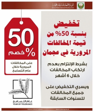 تخفيض بنسبة 50% من قيمة المخالفات المرورية في عجمان