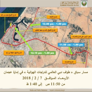 إغلاق الطرق في امارة عجمان وفق المسار المحدد لمسار سباق "طواف دبي العالمي للدراجات الهوائية"