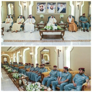 حاكم عجمان يستقبل وفد من شرطة عجمان للتهنئة بعيد الاضحى المبارك