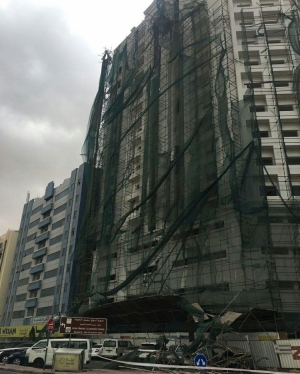 تضرر 12 سيارة بسبب سقوط مواد حديدية من بناية قيد الانشاء في عجمان