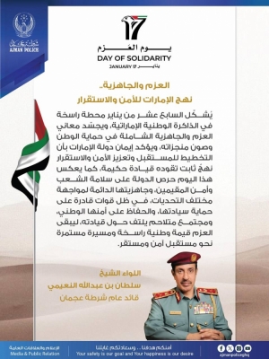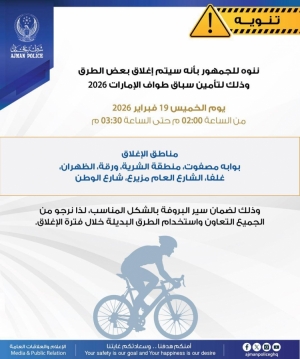 شرطة عجمان تعزز أمن الطرق بإطلاق الحملة الفصلية " نحو طريق آمن لكل مستخدميه " 13/01/2026