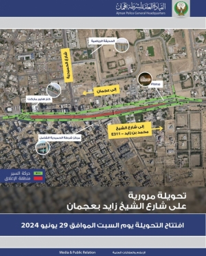 ابتداء من 29 يونيو 2024 تحويلة مرورية على امتداد طريق الشيخ زايد بإمارة عجمان
