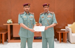 قائد عام شرطة عجمان يهنئ ضابطاً لحصوله على شهادة الدكتوراه في القانون