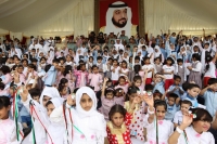 طلاب وطالبات المدارس يجسدون معاني الحب لرئيس الدولة في قرية وزارة الداخلية بعجمان