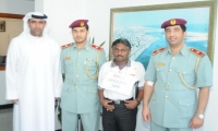 شرطة عجمان تستقبل ضيفاً قدم من دبي مشياً على الأقدام