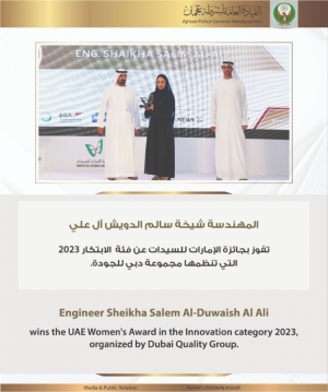 المهندسة شيخة سالم الدويش آل علي تفوز بجائزة الإمارات للسيدات عن فئة الابتكار 2023 التي تنظمها مجموعة دبي للجودة. 29/11/2023