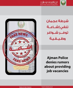 تنفي القيادة العامة لشرطة عجمان ما تداوله رواد التواصل الاجتماعي عن فتح باب التوظيف لجميع الجنسيات وبدائل وتفاصيل أخرى لا أساس لها من الصحة. وتدعو شرطة عجمان الجمهور الكريم الى اعتماد الأخبار والاعلانات من مصادرها الرسمية، محذرة من عواقب نشر الاشاعات، مؤك 25/05/2023