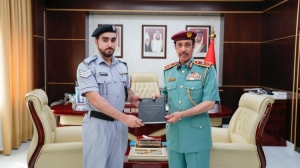 قائد عام شرطة عجمان يكرم موظف لتميزه في إتمام رسالة الماجستير في القانون العام