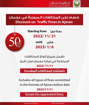 شرطة عجمان تعلن عن تخفيض بنسبة 50% على المخالفات المرورية