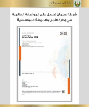شرطة عجمان تحصل على المواصفة العالمية في إدارة الأمن والمرونة المؤسسية