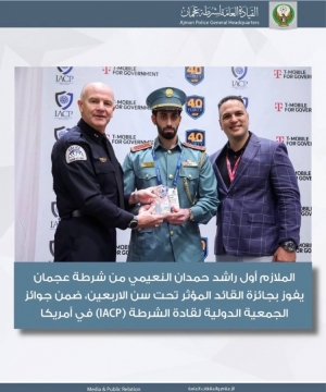 الملازم أول راشد حمدان النعيمي من شرطة عجمان يفوز بجائزة القائد المؤثر تحت سن الاربعين، ضمن جوائز الجمعية الدولية لقادة الشرطة (IACP) في أمريكا 18/10/2022