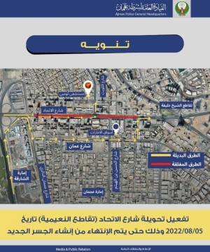 شرطة عجمان تباشر معالجة الاختناقات المرورية على شارع الاتحاد بالتعاون مع بلدية عجمان