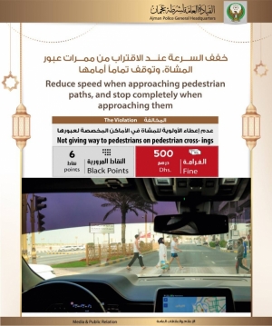 خفف السرعة عند الاقتراب من ممرات عبور المشاة، وتوقف تماما أمامها
