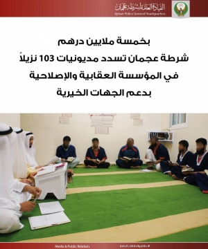 بخمسة ملايين درهم شرطة عجمان تسدد مديونيات 103 نزيلاً في المؤسسة العقابية والإصلاحية بدعم الجهات الخيرية