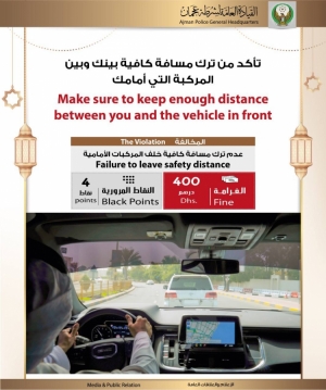 تأكد من ترك مسافة كافية بينك وبين المركبة التي أمامك