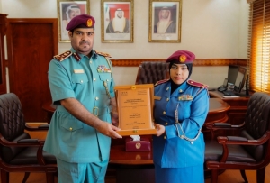نائب قائد عام شرطة عجمان يكرم موظفة لتميزها في إتمام رسالة الماجستير في القانون الخاص