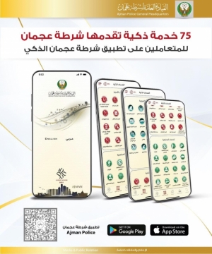 75 خدمة ذكية تقدمها شرطة عجمان للمتعاملين على تطبيق شرطة عجمان الذكي 06/01/2022