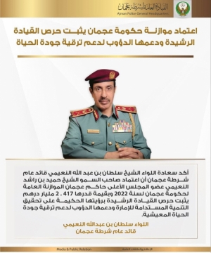 اللواء سلطان النعيمي: اعتماد موازنة حكومة عجمان يثبت حرص القيادة الرشيدة ودعمها الدؤوب لدعم ترقية جودة الحياة المعيشية 07/01/2022