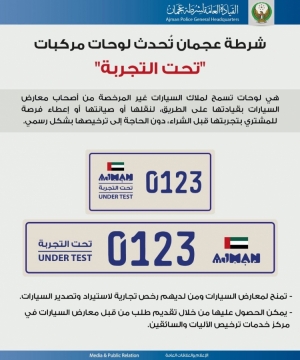 شرطة عجمان تُحدث لوحات مركبات " تعليم قيادة السيارات " 21/12/2021