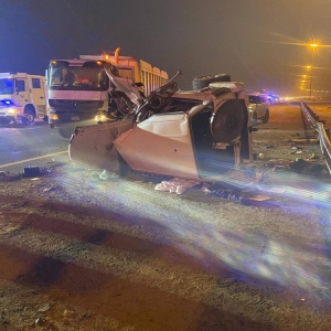 وفاة شاب مواطن بحادث تصادم مركبته بشاحنة في إمارة عجمان بسبب الإنحراف المفاجئ
