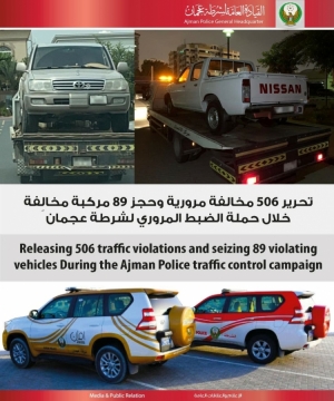 تحرير 506 مخالفة مرورية وحجز 89 مركبة مخالِفة خلال حملة الضبط المروري لشرطة عجمان