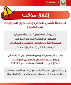 إغلاق مؤقت لمحطة شامل لفحص وتسجيل المركبات في عجمان