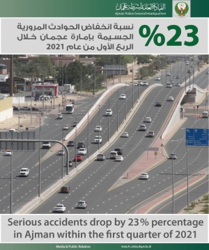 23% نسبة انخفاض الحوادث المرورية الجسيمة بإمارة عجمان خلال الربع الأول من عام 2021