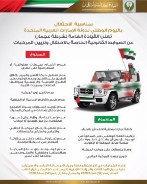 الضوابط القانونية الخاصة بالاحتفال وتزيين المركبات بمناسبة اليوم الوطني 49 للدولة