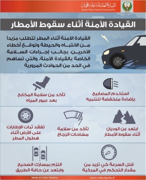شرطة عجمان تطلق حملة توعوية بعنوان " القيادة الآمنة أثناء سقوط الأمطار "