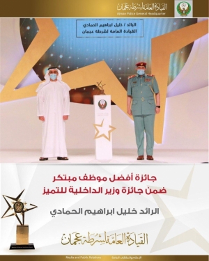 جائزة أفضل موظف مبتكر ضمن جائزة وزير الداخلية للتميز الرائد خليل ابراهيم الحمادي من القيادة العامة لشرطة عجمان 21/08/2020
