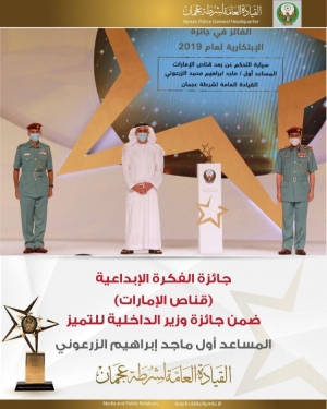 جائزة الفكرة الإبداعية (قناص الإمارات) ضمن جائزة وزير الداخلية للتميز المساعد أول ماجد إبراهيم الزرعوني من القيادة العامة لشرطة عجمان 21/08/2020