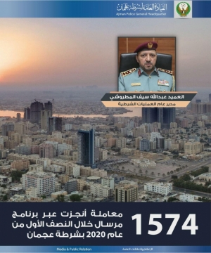 1574 معاملة أنجزت عبر برنامج مرسال خلال النصف الأول من عام 2020 بشرطة عجمان 25/08/2020