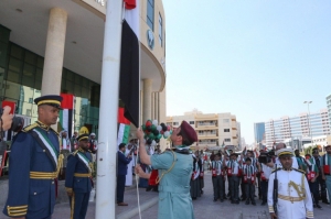 شرطة عجمان تجدد الولاء والانتماء للوطن في يوم العلم مع الموظفين والسياح والجمهور