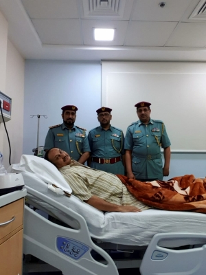 وفد من مركز شرطة المدينة الشامل يزور الرقيب محمد سالم المهري للاطمئنان على صحته