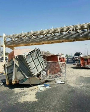 سائق شاحنة يصدم جسر مشاة بعجمان