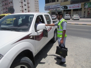 القيادة العامة لشرطة عجمان توزع وجبات خفيفة على السائقين قبيل موعد الإفطار