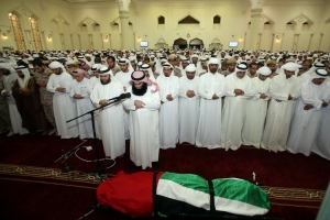 حاكم عجمان يؤدي صلاة الجنازة على جثمان الشهيد عبدالله الحمادي
