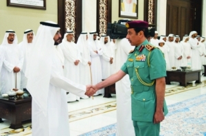 حاكم عجمان يستقبل وفد من ضباط شرطة عجمان للتهنئة بشهر رمضان المبارك