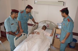 وفد من إدارة العمليات بشرطة عجمان يزور العريف عبدالرحمن التميمي