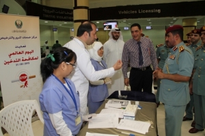 شرطة عجمان تنظم محاضرة تثقيفية صحية وفحوصات طبية للموظفين والمتعاملين بمناسبة اليوم العالمي لمكافحة التدخين 01/06/2015