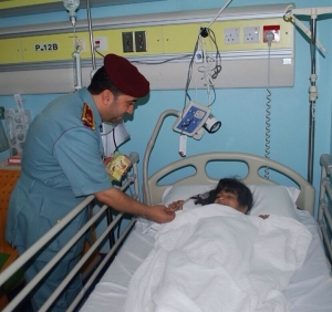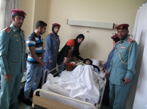 وفد من شرطة عجمان يزور طالبة تعرضت لحادث سقوط من أعلى الشرفة