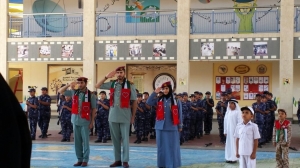 وفد من شرطة عجمان يشارك مدرسة الحسن البصري إحتفالها بيوم العلم
