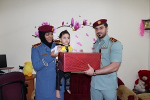 وفد من شرطة عجمان يزور الطفل الذي تعرض لحادث سقوط من أعلى الشرفة