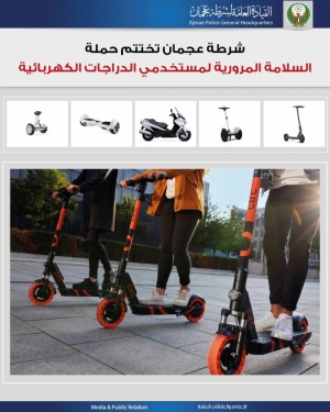 شرطة عجمان تطلق الحملة المرورية الموحدة الثانية تحت شعار " السلامة المرورية لمستخدمي الدراجات الكهربائية "السكوتر الكهربائي "