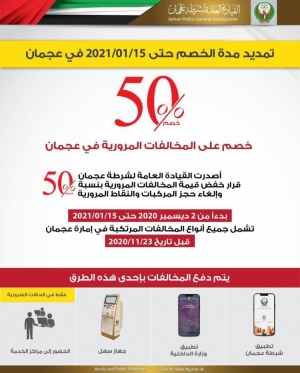 شرطة عجمان تمدد فترة تخفيض المخالفات المرورية بنسبة 50% حتى الخامس عشر من يناير القادم