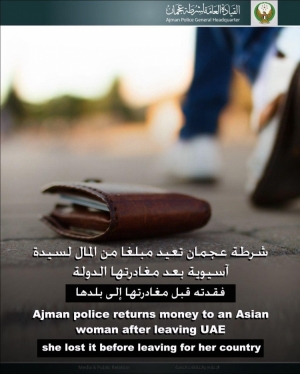 شرطة عجمان تعيد مبلغاً من المال مفقوداً لسيدة آسيوية بعد مغادرتها الدولة
