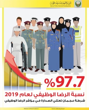 شرطة عجمان تعتلي الصدارة في مؤشر الرضا الوظيفي عام 2019 بنسبة 97.7%