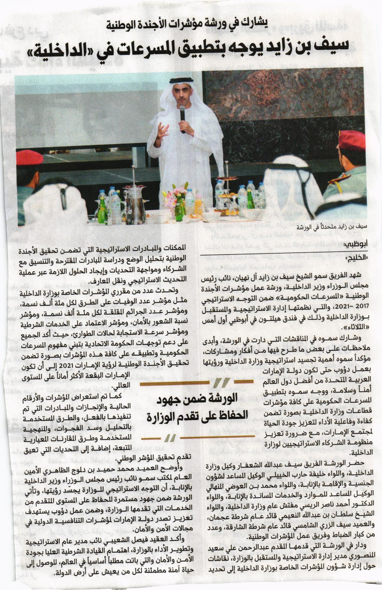 سيف بن زايد يوجه بتطبيق المسرعات في الداخلية