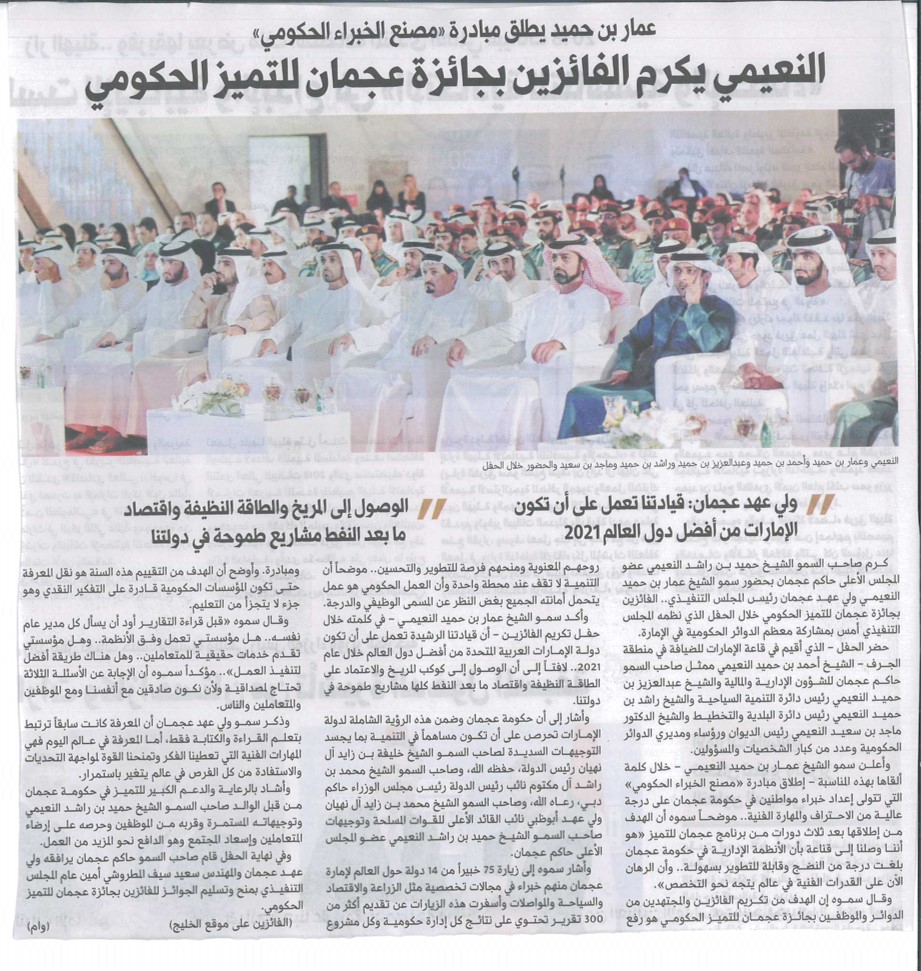 النعيمي يكرم الفائزين بجائزة عجمان للتميز الحكومي