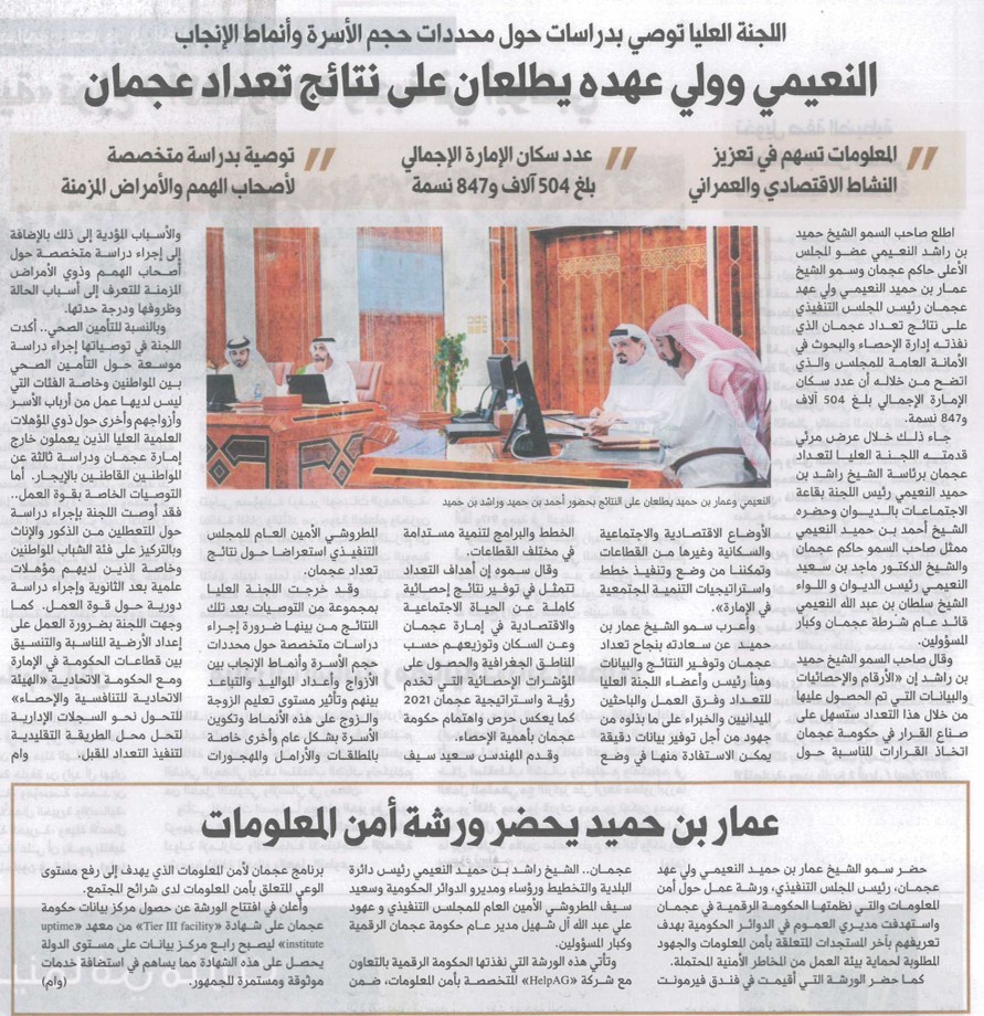 النعيمي وولي عهده يطلعان على نتائج تعداد عجمان